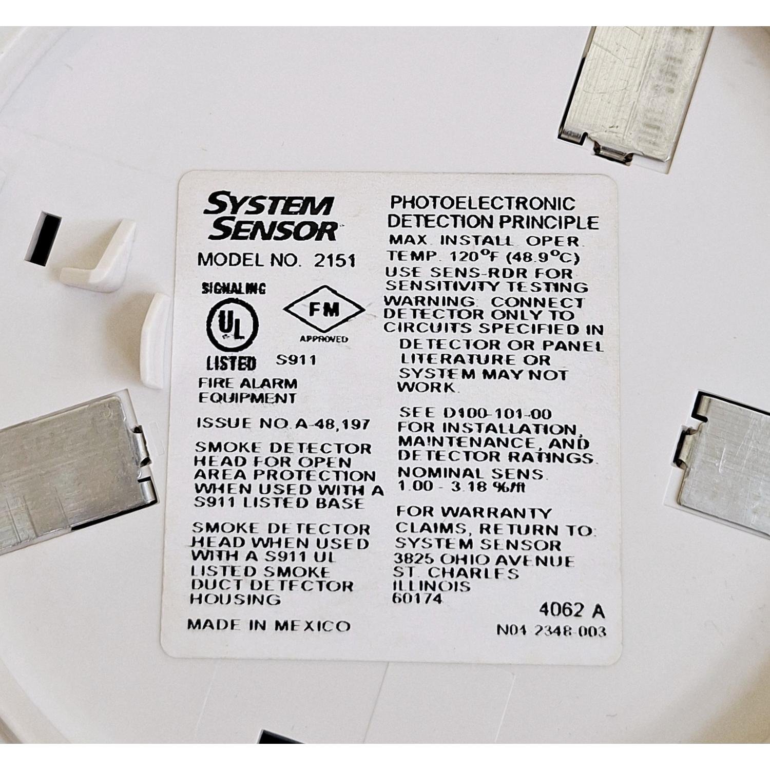 System Sensor Model 2151 4062 A Smoke Detector