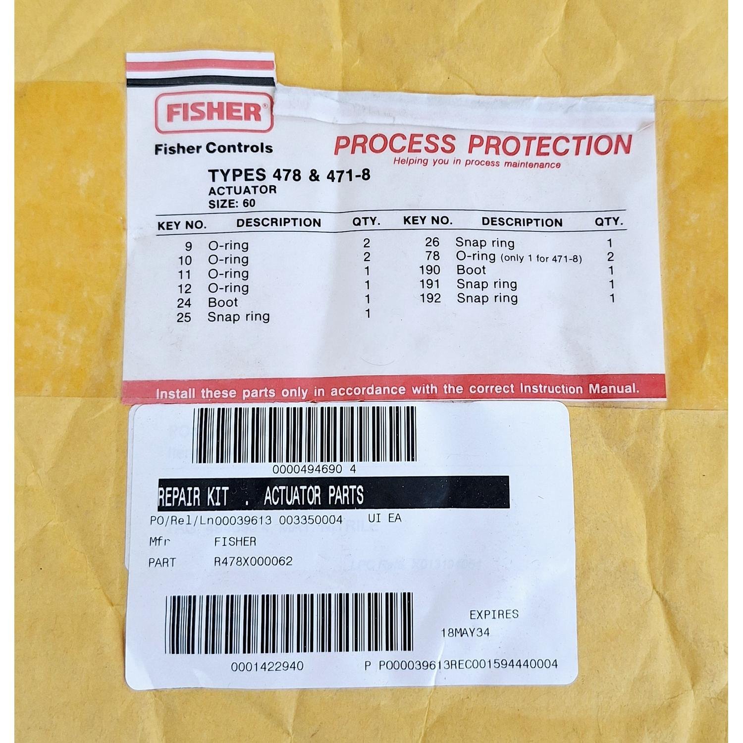 Fisher Controls R478X000062 Actuator Repair Kit