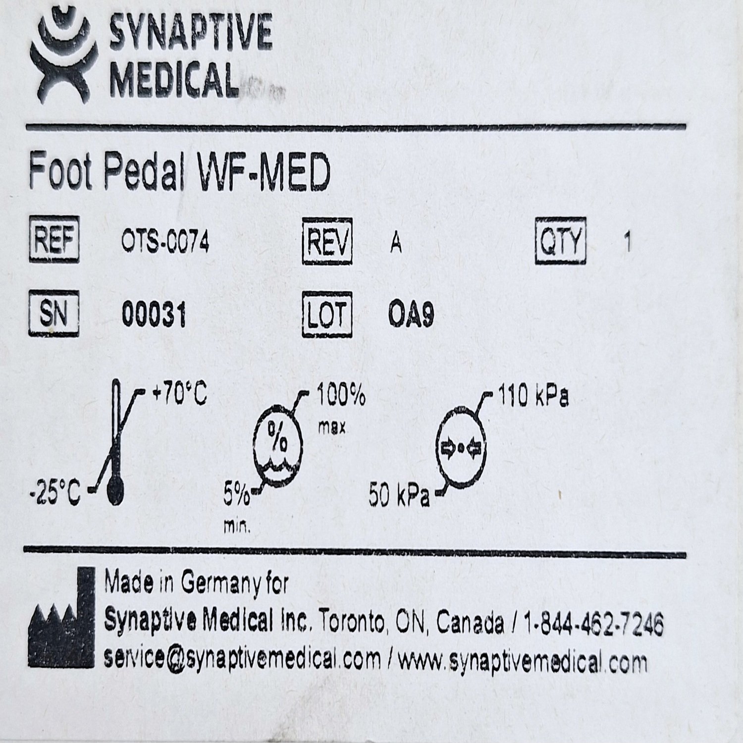 Synaptive Medical OTS-0074 Foot Pedal WF-MED