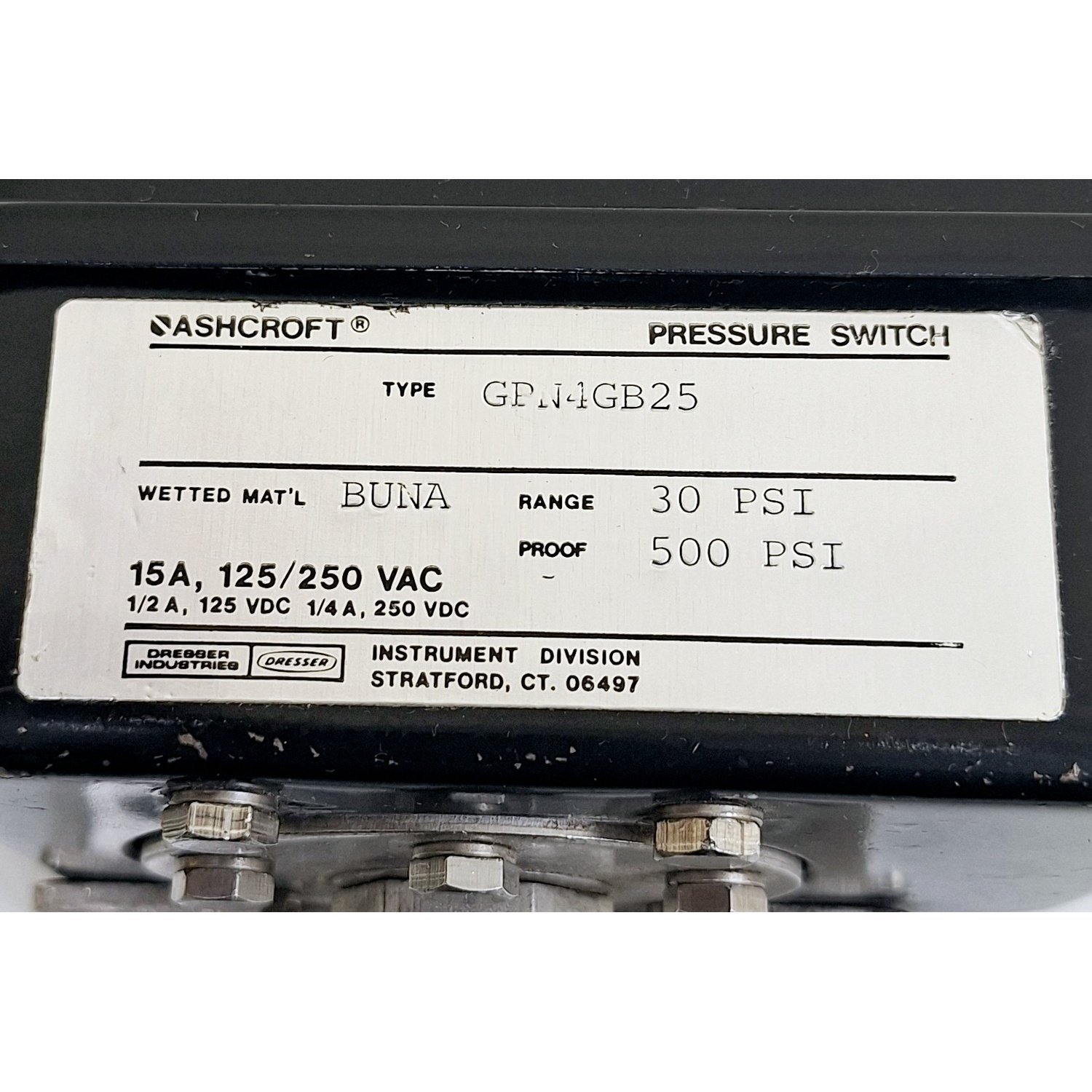 Ashcroft GPN4GB25 Pressure Switch 15A 125250 VAC