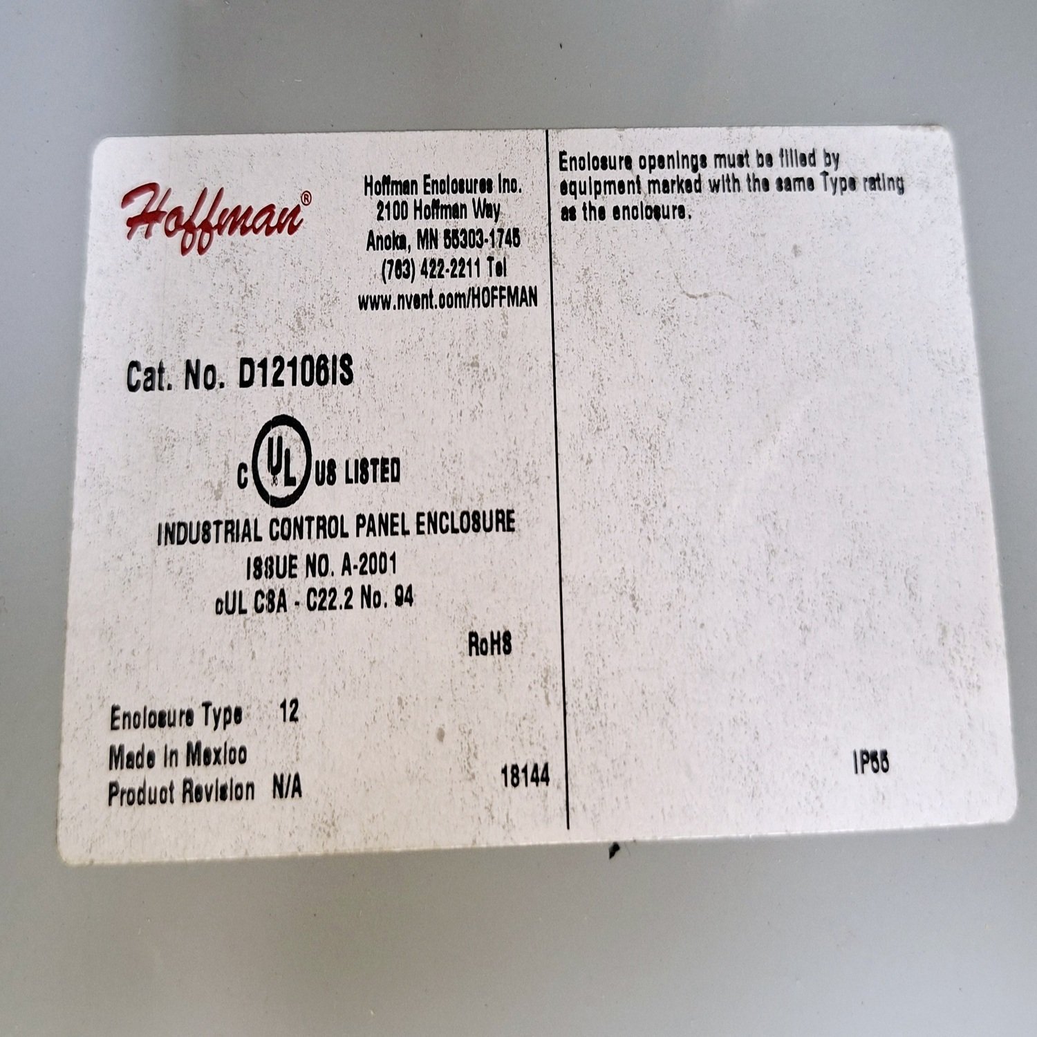 Fisher Controls 67CR-208/PM1 Pressure Regulator with Hoffman D12106IS Enclosure