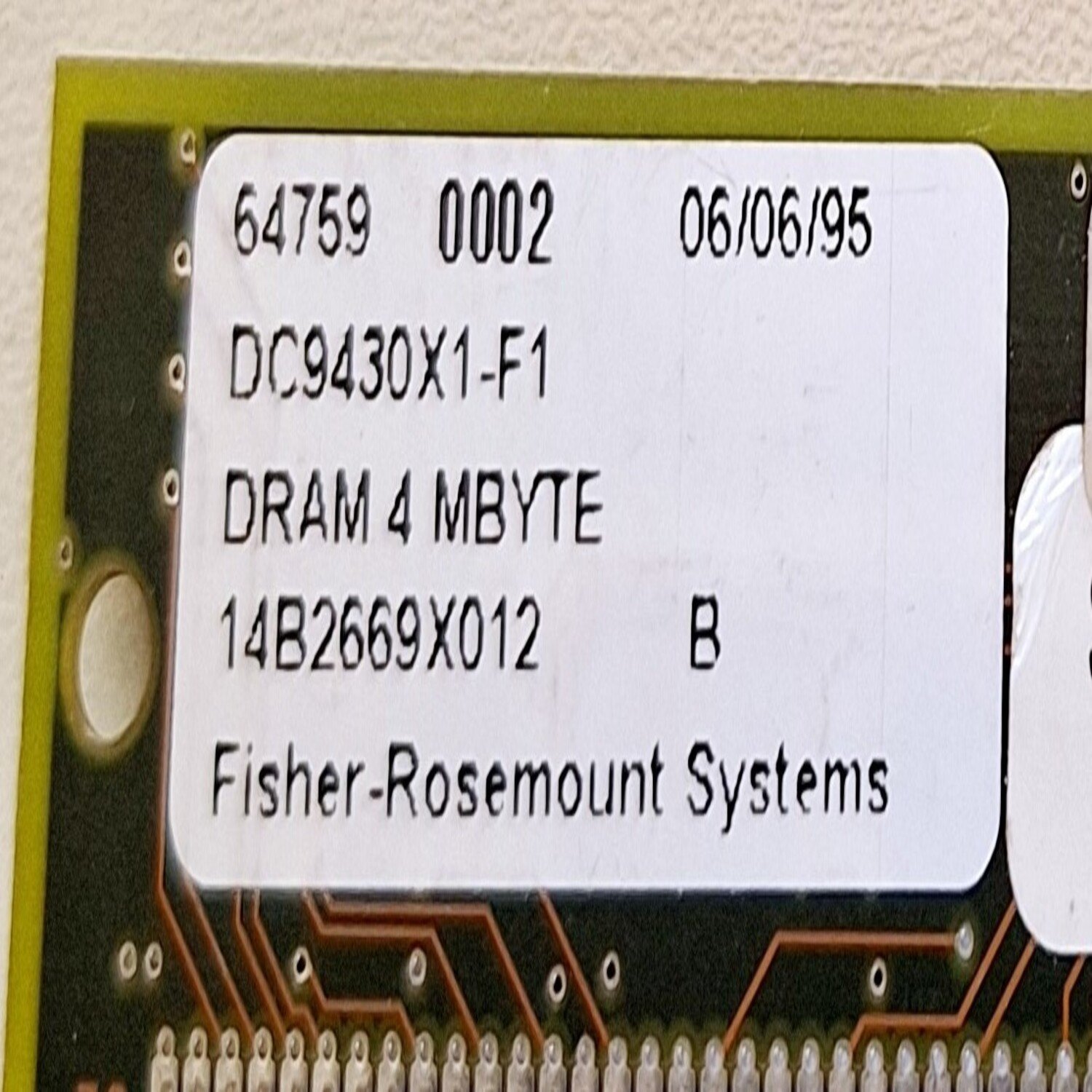 Fisher-Rosemount Systems DC9430X1-F1 / 14B2669X012 DRAM 4 MB Memory Chip