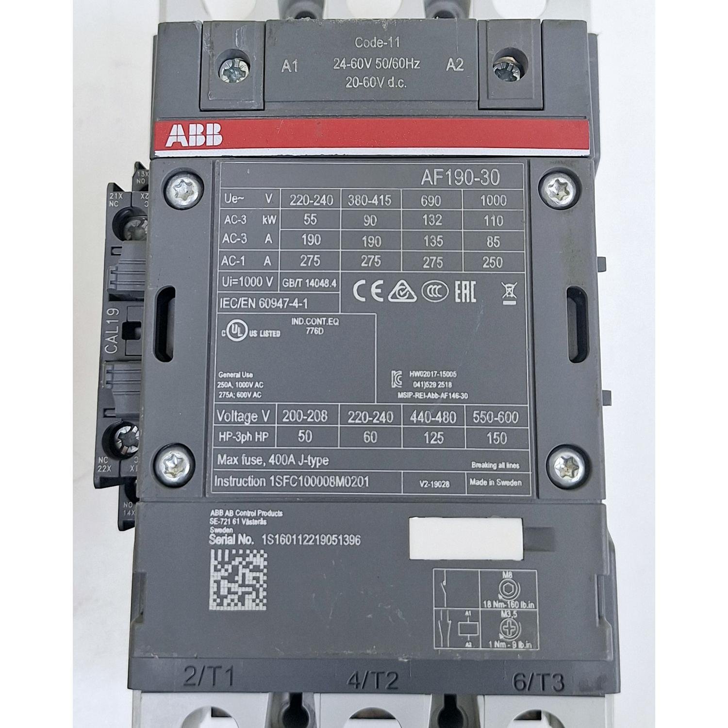 ABB AF190-30 1SFC100008M0201 CAL19-11 Circuit Breaker 400A