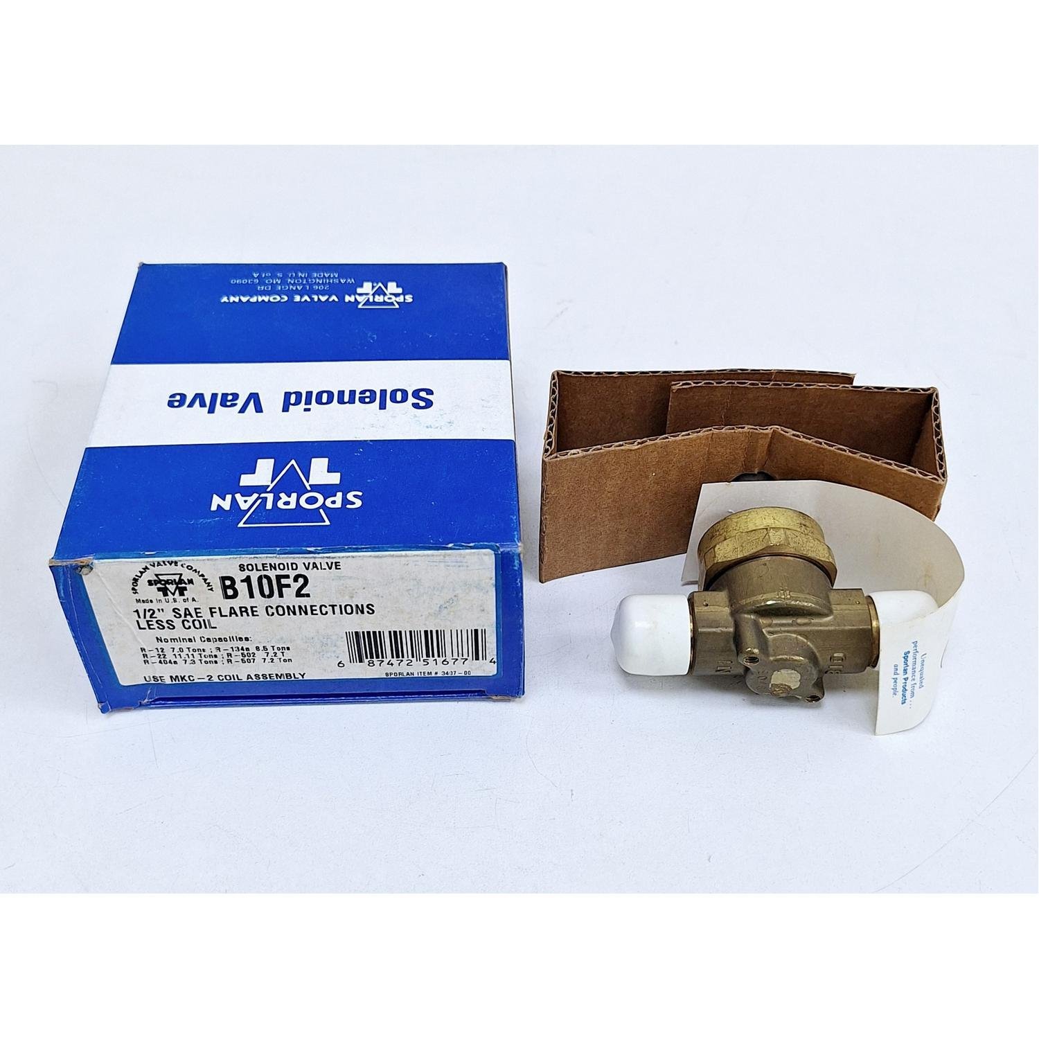 Sporlan B10F2 Solenoid Valve 1/2” SAE Flare Connections Less Coil