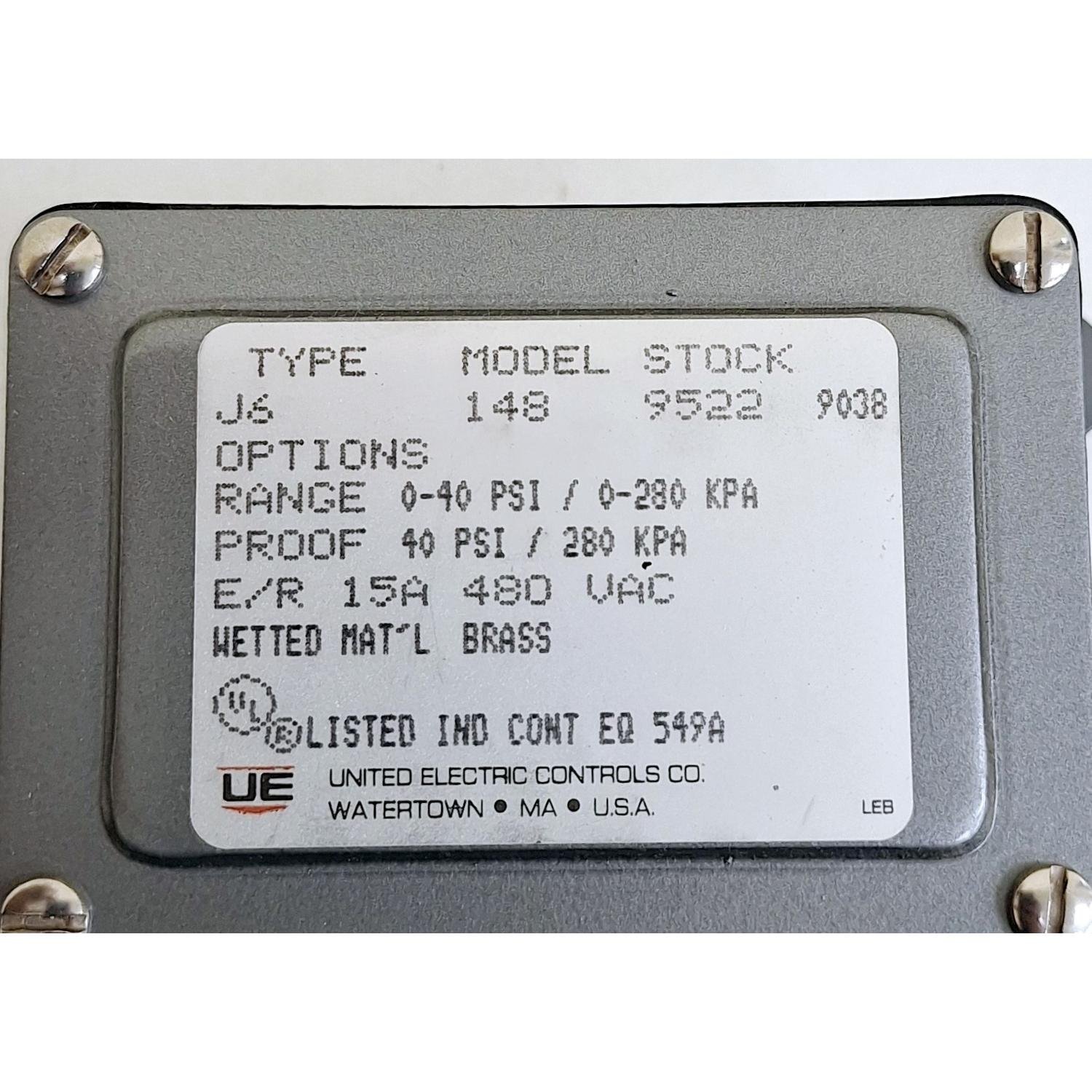 United Electric J6X / S126AD Pressure Switch 5A 125/250 VAC