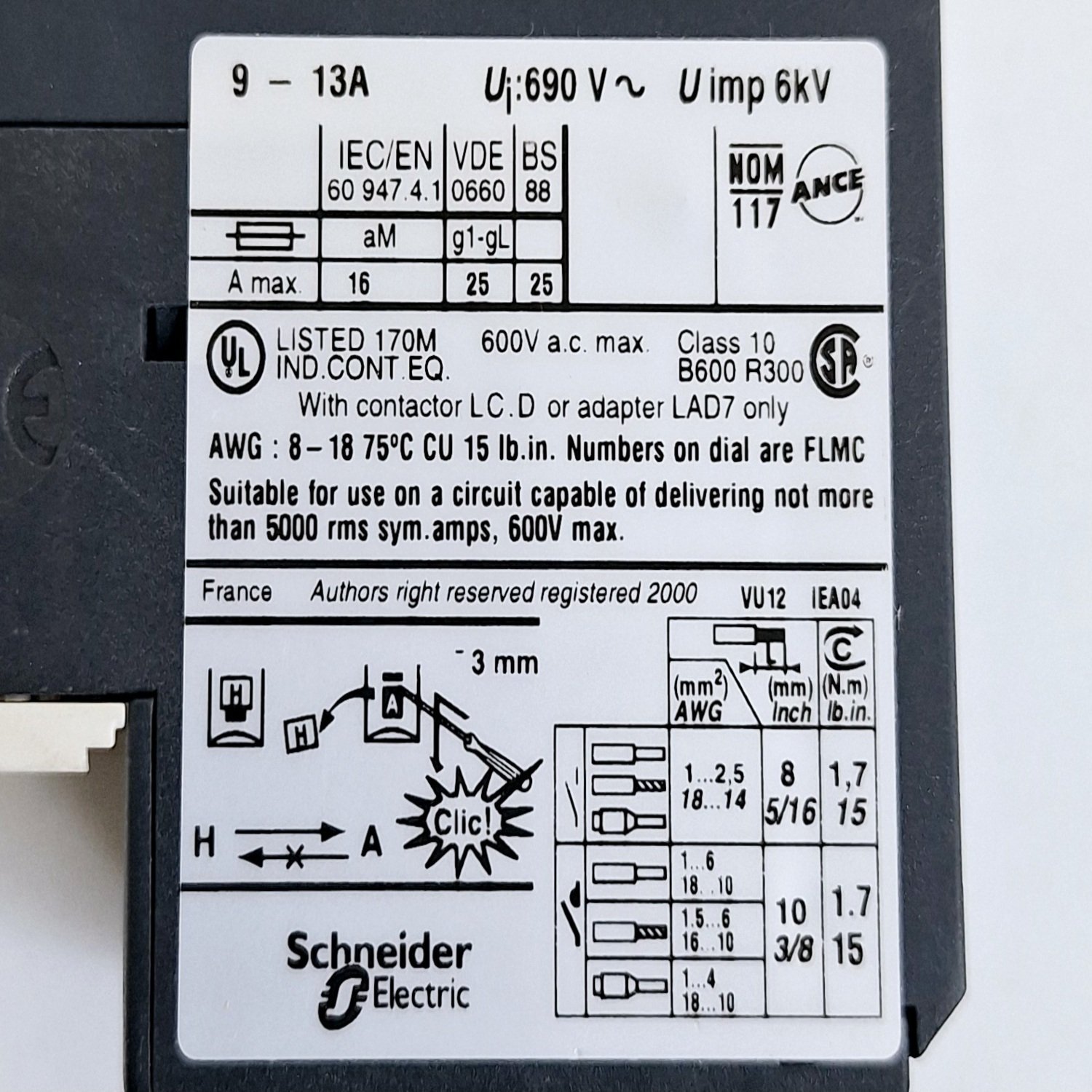 Telemecanique Square D LRD16 Thermal Overload Relay 9-13A