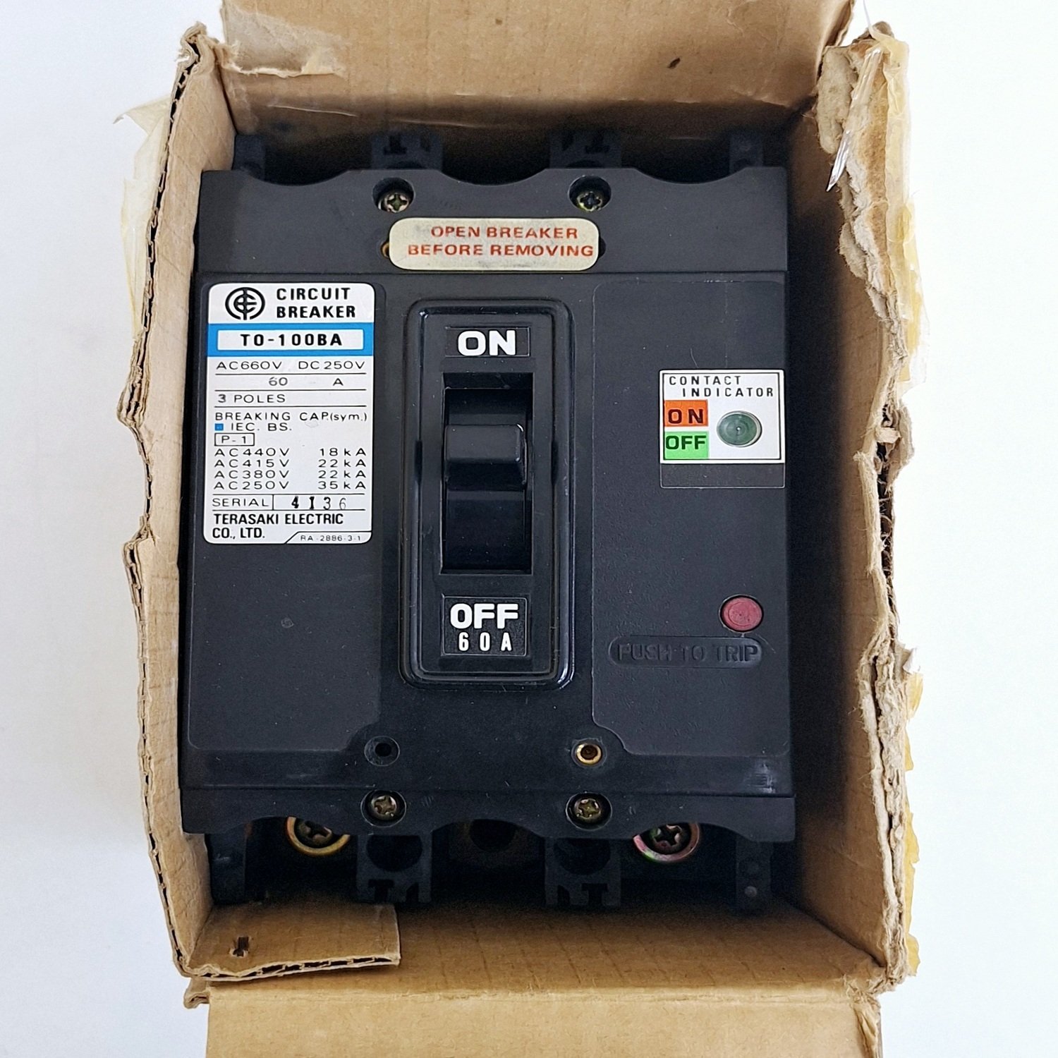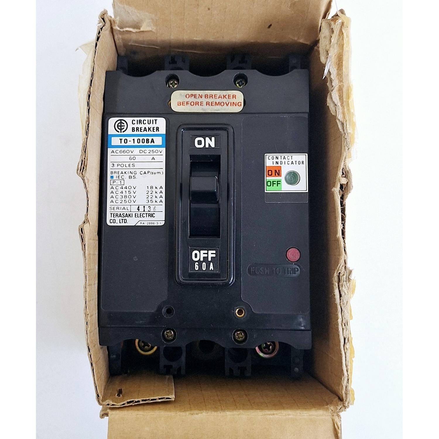Terasaki TO-100BA / 60A Circuit Breaker 3 Poles AC660V DC250V