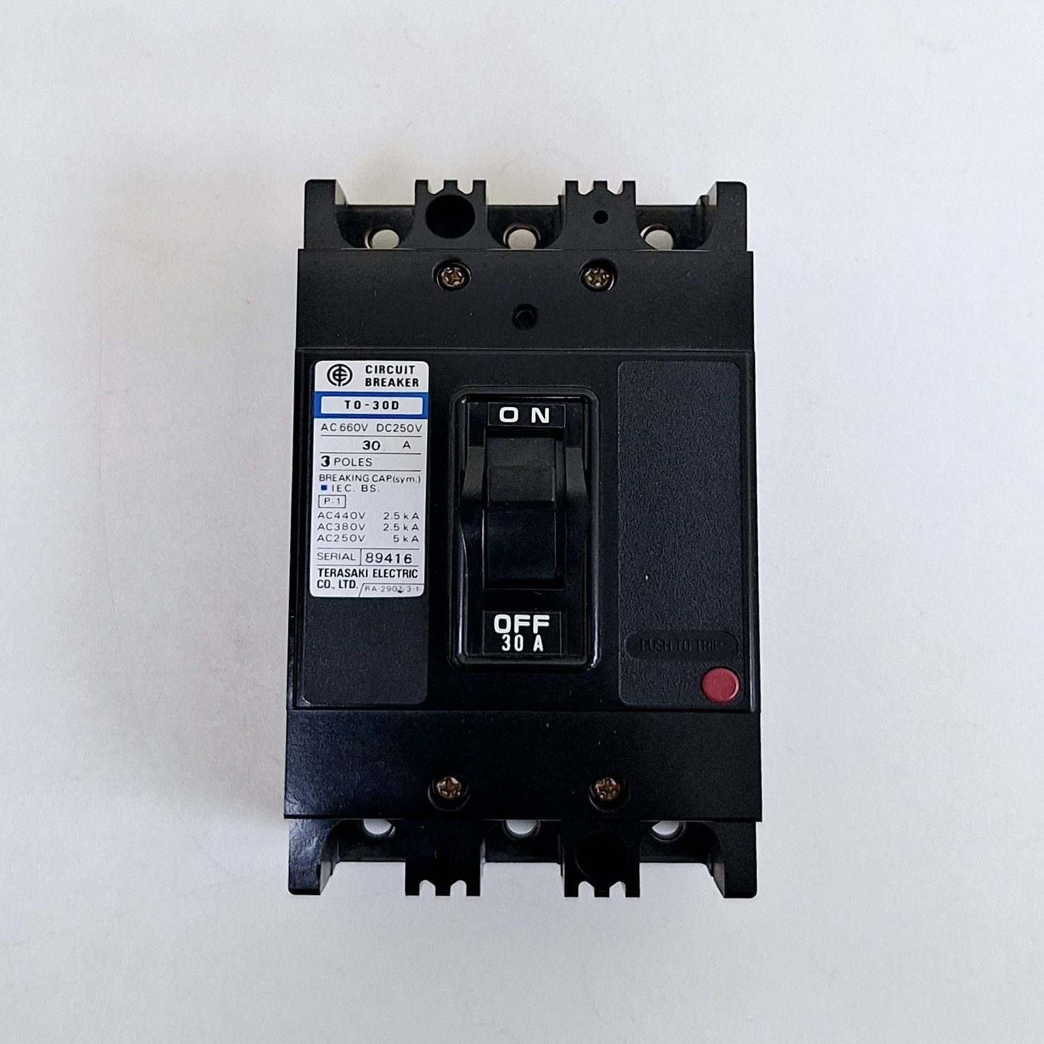 Terasaki TO-30D / 30A Circuit Breaker 3 Poles AC660V DC250V