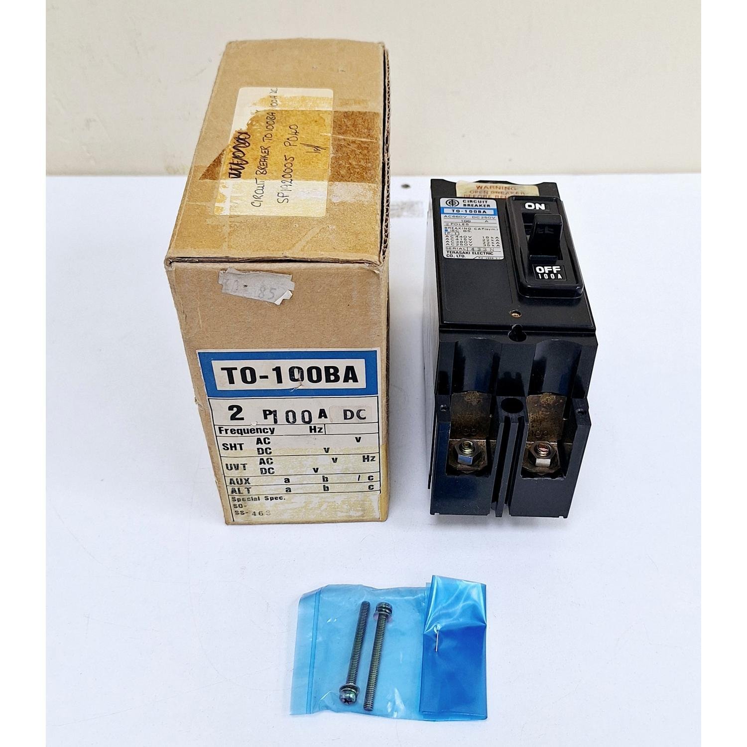 Terasaki TO-100BA / 100A Circuit Breaker 660V AC 250V DC 2 Poles