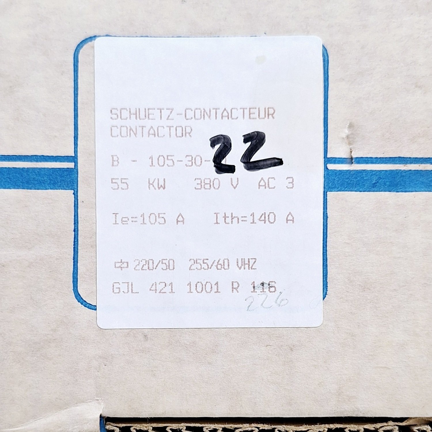 BBC Petercem B 105 / B-105-30-22 Contactor 55KW-380V AC
